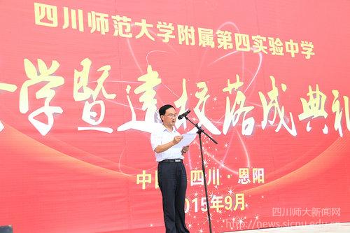 9月7日,四川师范大学附属第四实验中学(简称“师大四中”)举行开学暨建校落成典礼。四川师范大学党委书记周介铭发表讲话,巴中市委副书记、市长冯键出席并为学校揭牌,巴中市政府副市长袁闻聪出席典礼仪式并讲话。